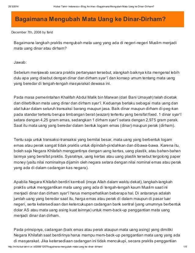 Keuntungan Mata Uang Dinar dan Dirham - MuslimSiana ...